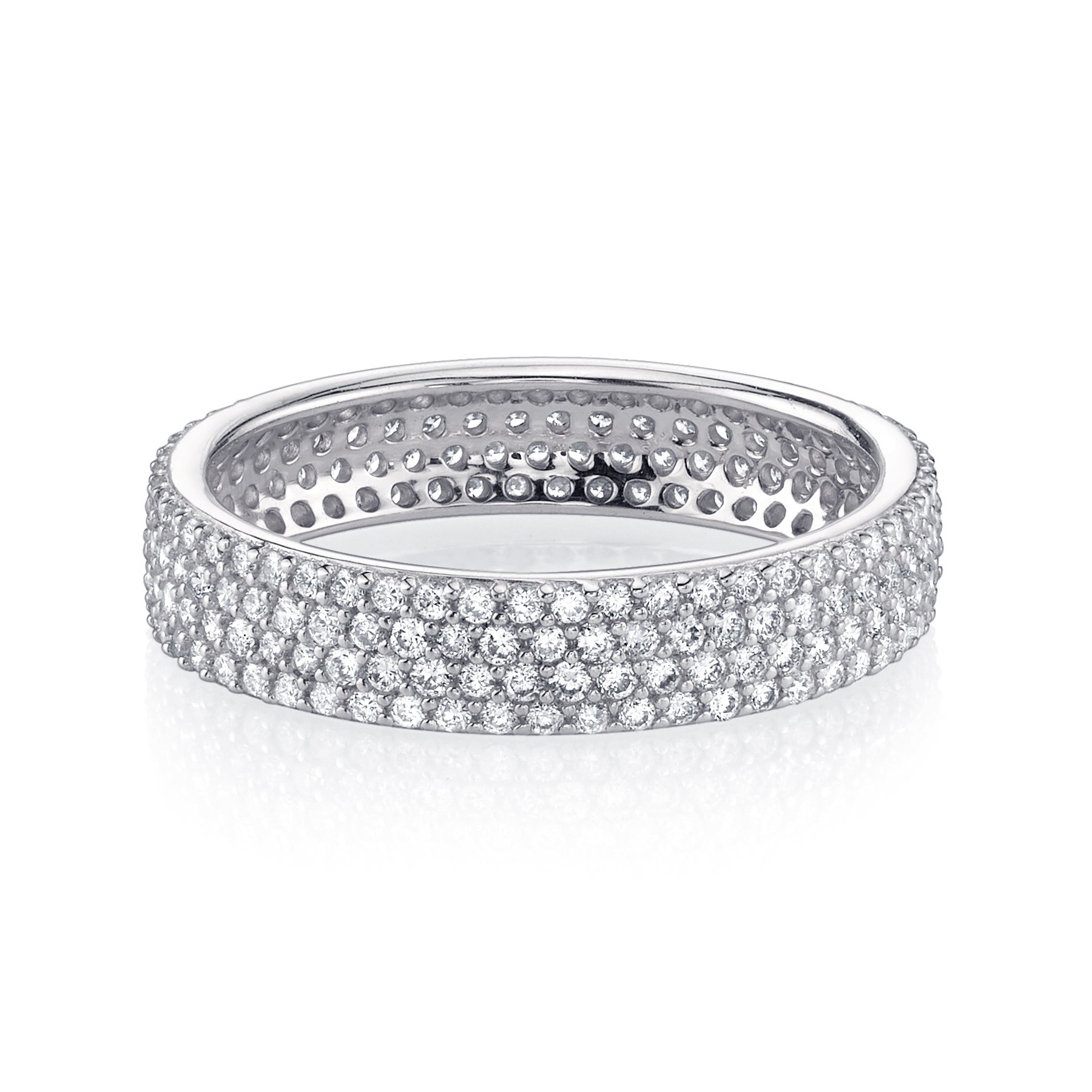 Four rows of shimmering white diamonds set in a honeycomb pave pattern in 14K gold.