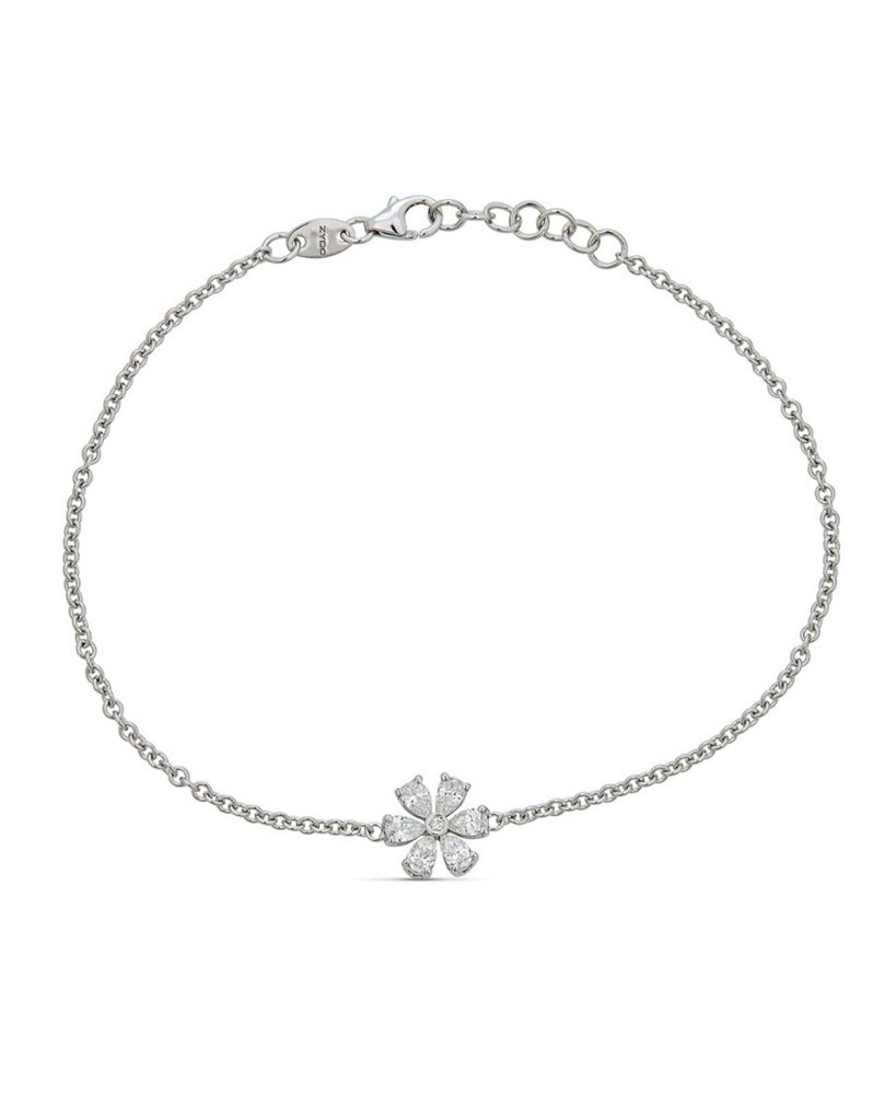 Six pear shape diamonds form a stunning floral motif with a round diamond in the center.