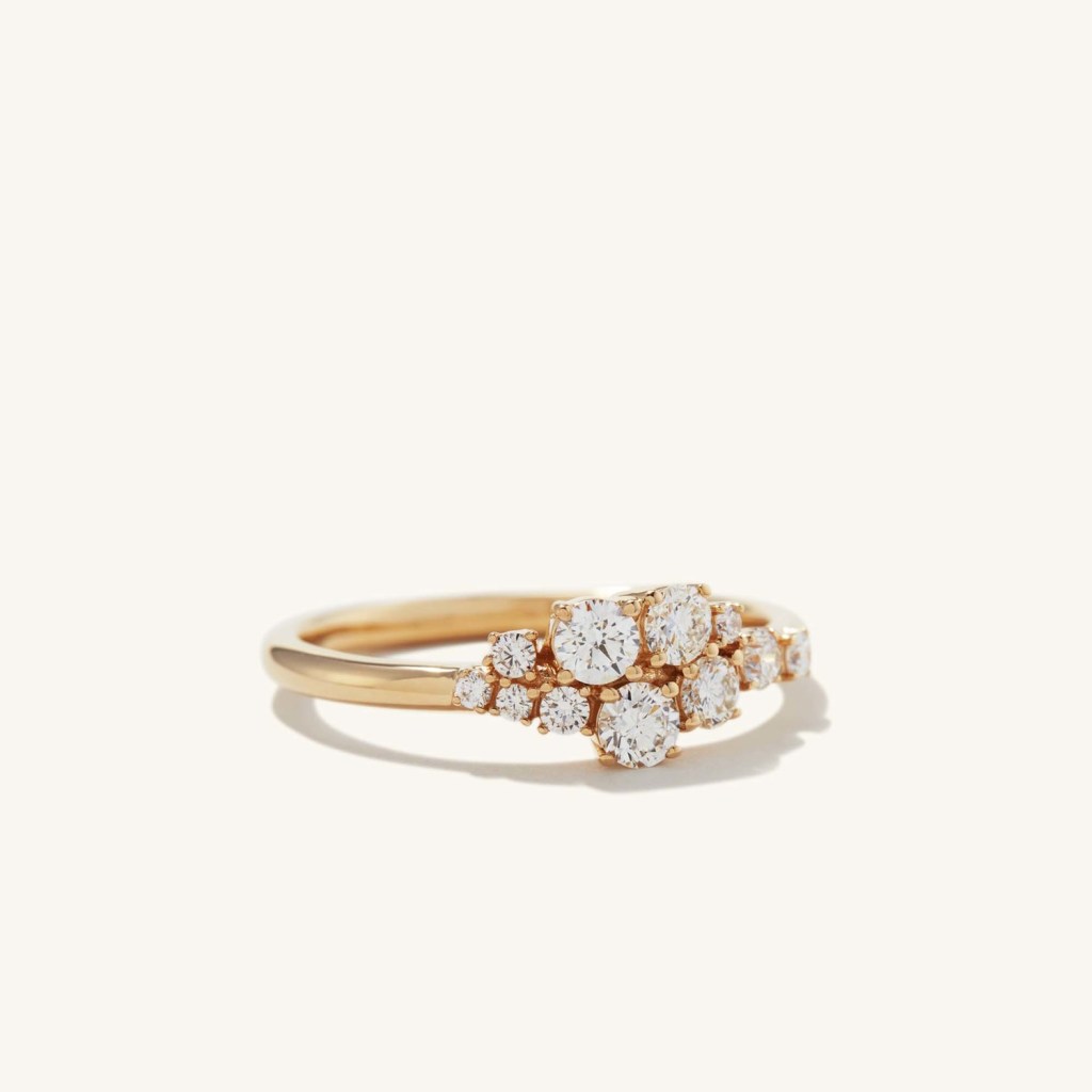 In case of diamonds, it’s always more the merrier. An organic shaped cluster holds together eleven shimmering diamonds of different sizes in 14K gold. and makes for an amazing conversation piece.