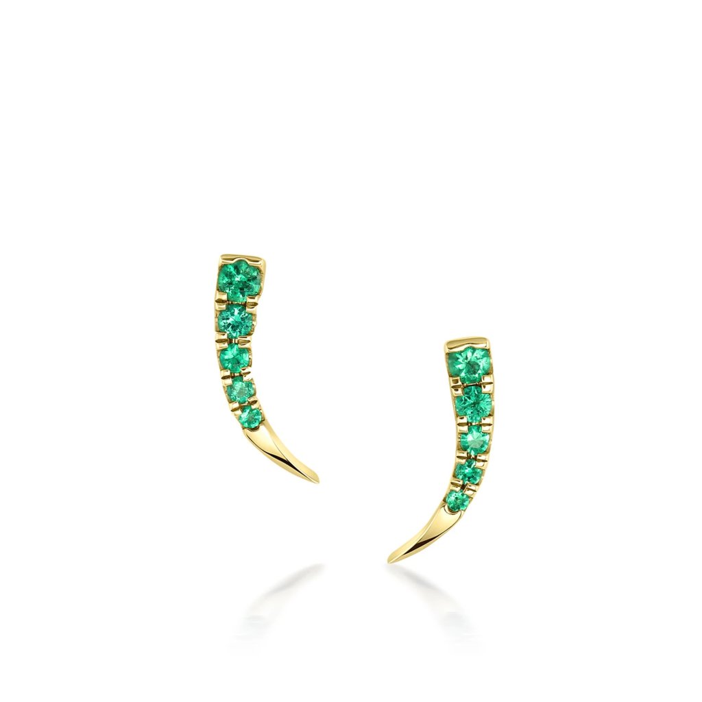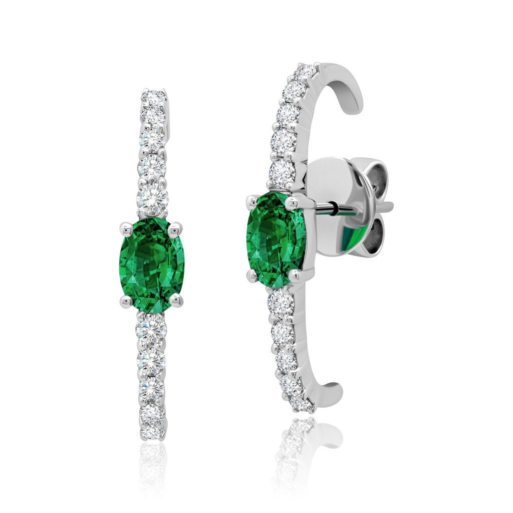 Two large oval emeralds adorn the vertical diamond ear cuffs.