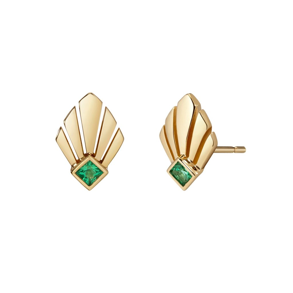 Smaller emerald stones set in yellow gold, cute and trendy.