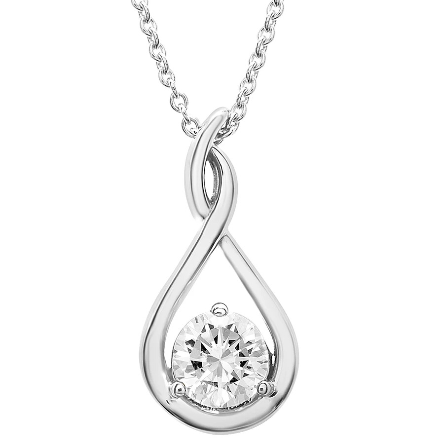 Shimmering round solitaire diamond set in a delicate swirl type pendant frame.